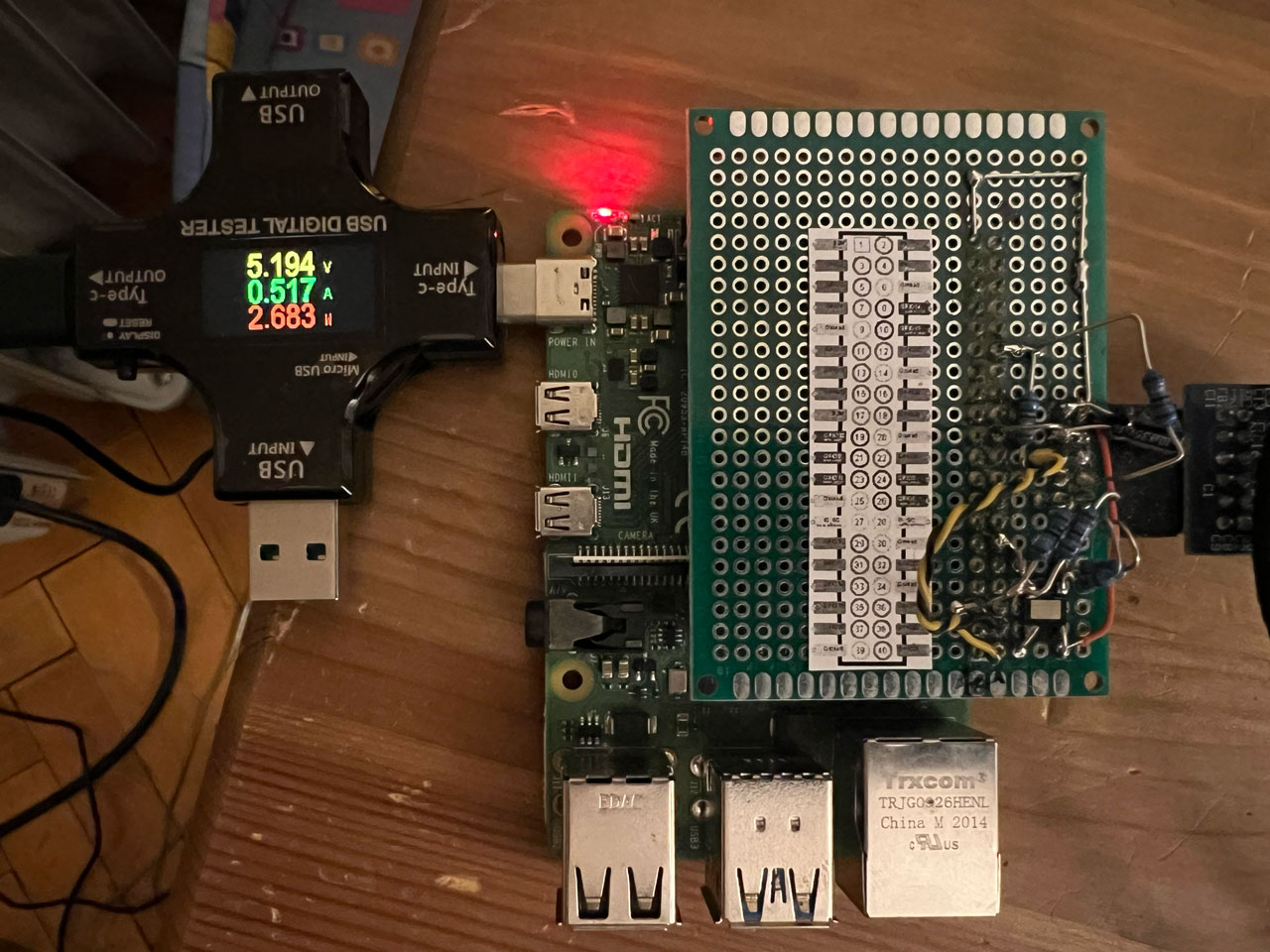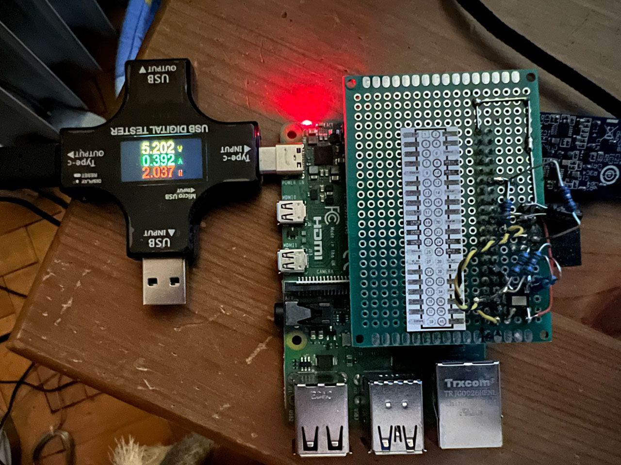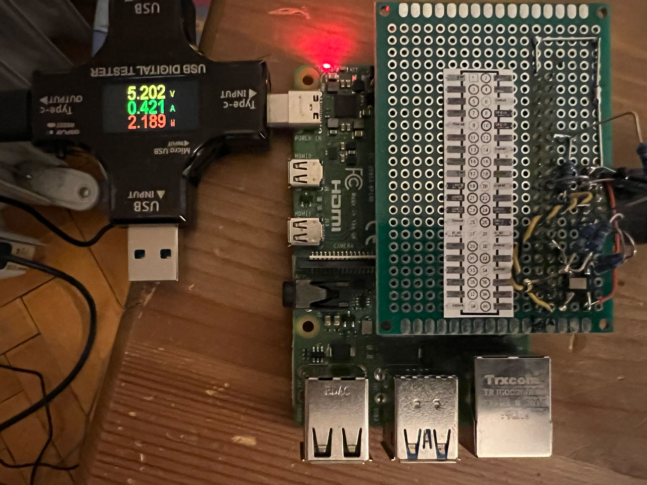 A total of 517mA that the first power source was not able to deliver. This was probably the reason that RPi could not boot sometimes. However, the biggest surprise came with Svxlink off: current draw was reduced to 421mA: