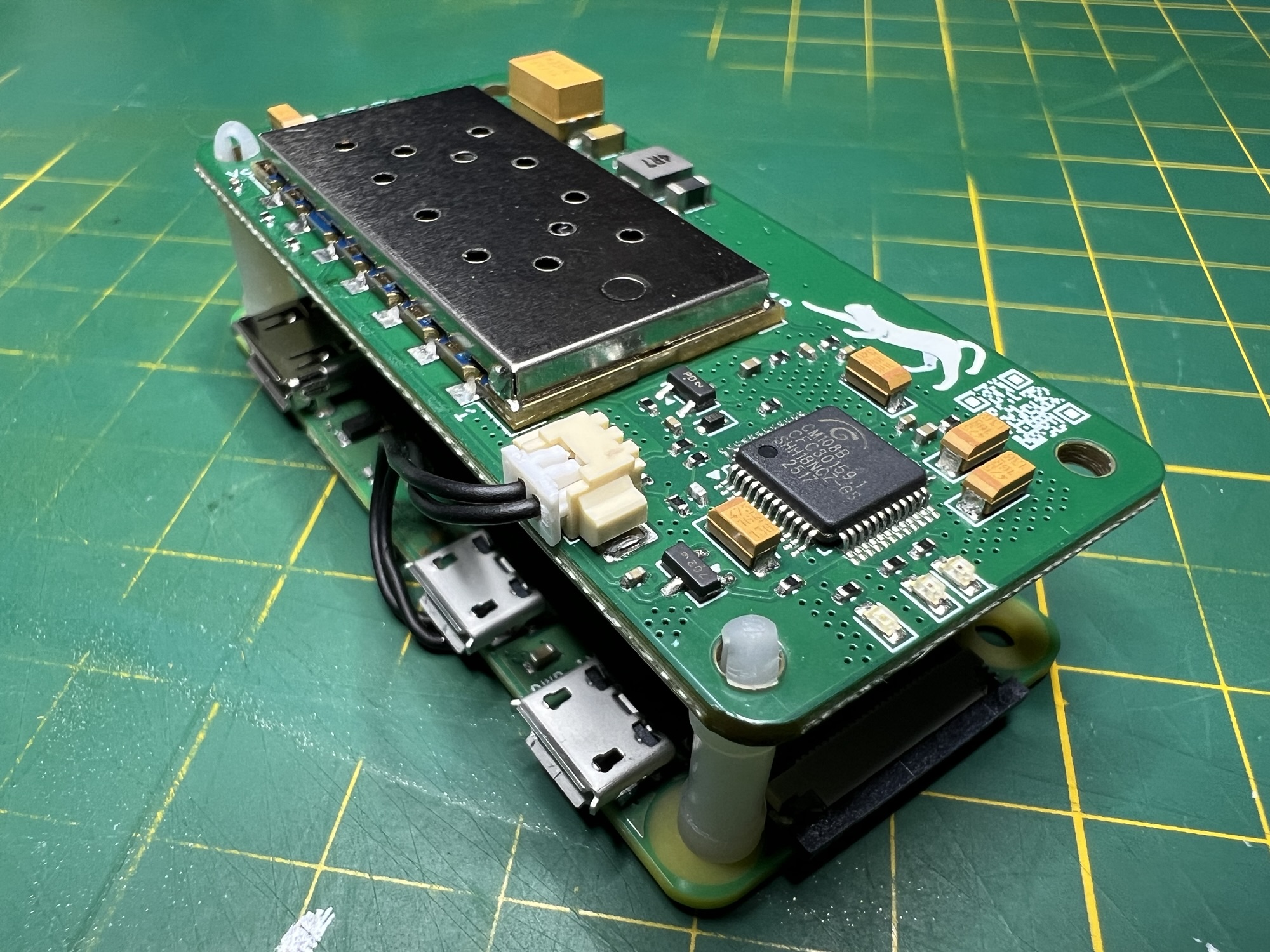 This version supports active cooling by attaching a 4-wire fan (with tacho and PWM wires). I designed the board with a MOLEX PicoBlade 4-pin 1.25mm pitch smd connector on the bottom of the board for convenience and fast connection of a fan. Also, it has an UFL connector for those that want to have a remote-ish antenna.